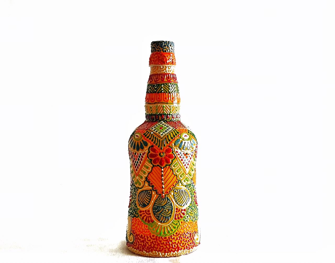 Material Used- Glass bottle ,Ceramic Powder , Acrylic Colour , Varnished
